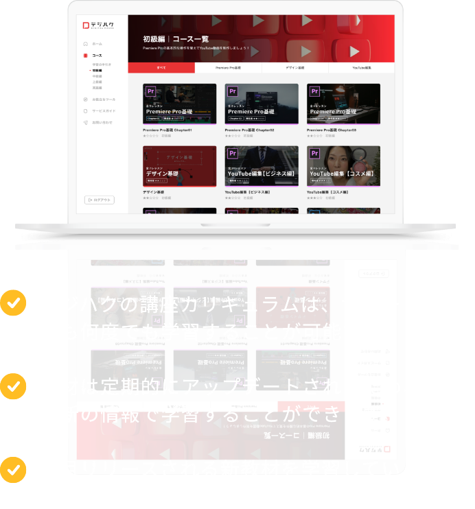 デジハクは動画を仕事にするために必要なスキルが詰まった、総合カリキュラムとなっています。