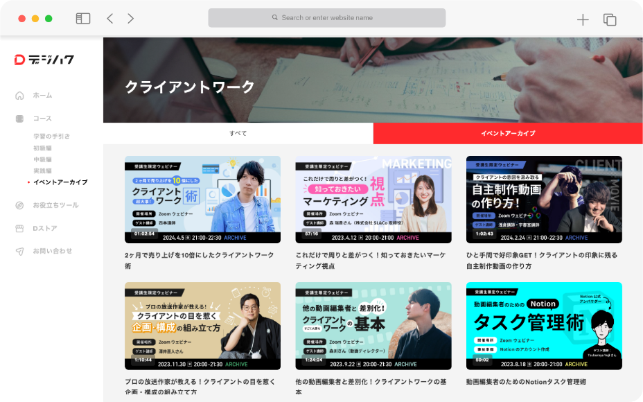 さらに過去イベントが見放題!自分の学びたいイベントを見返してピンポイントで学習することが可能です。