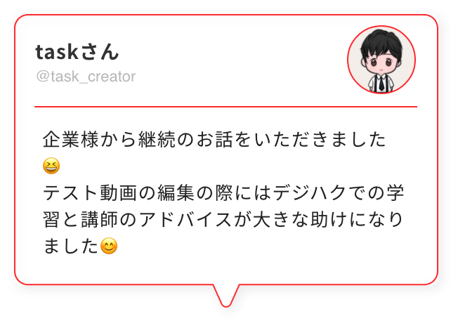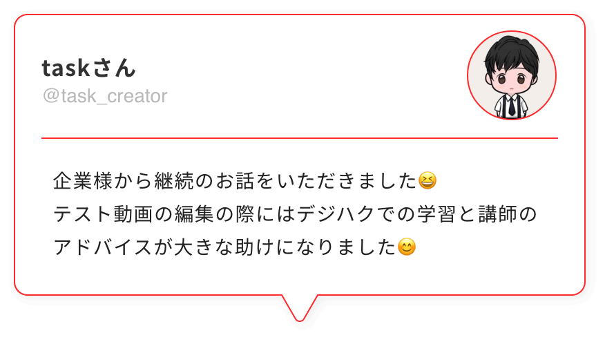 未経験から動画編集を仕事にしていく流れや、デジハクのサポート体制について実例を通して具体的にご紹介いたします。
