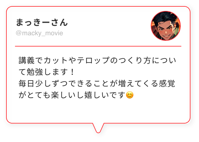 YouTubeや企業のサービス動画など、幅広い動画を制作するスキルが身に付きます。