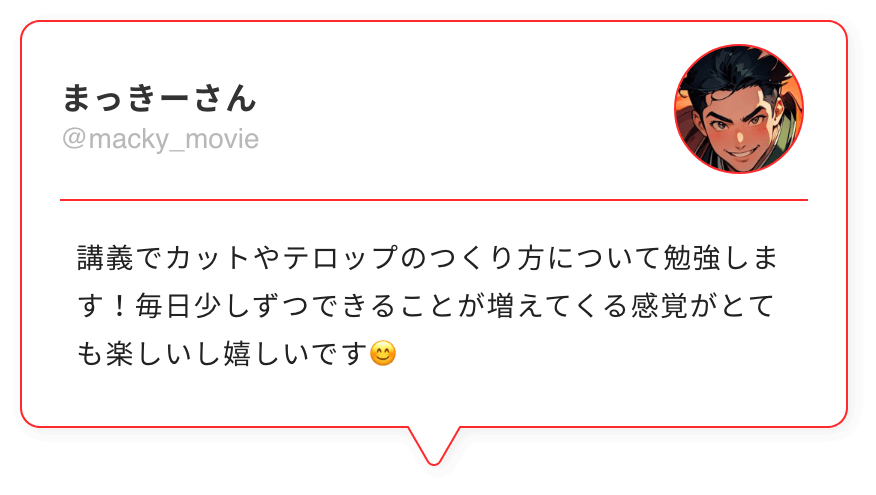 動画編集スキル以外にも、見積書の作り方、制作業務フローなど、動画を仕事する上で必要なスキルを学ぶことができます。